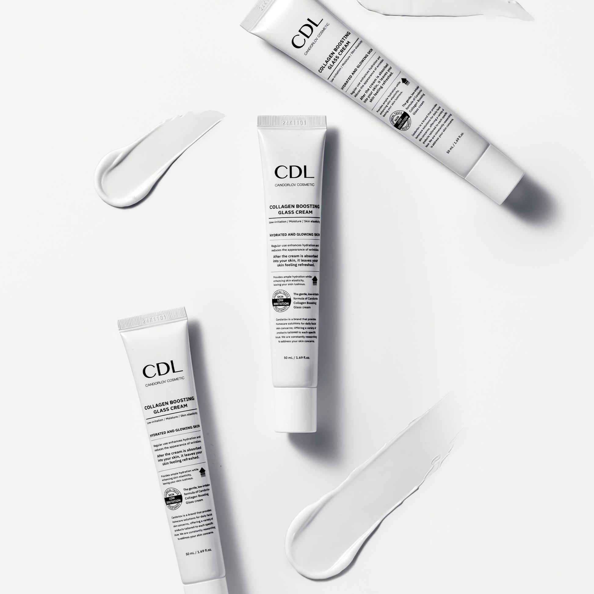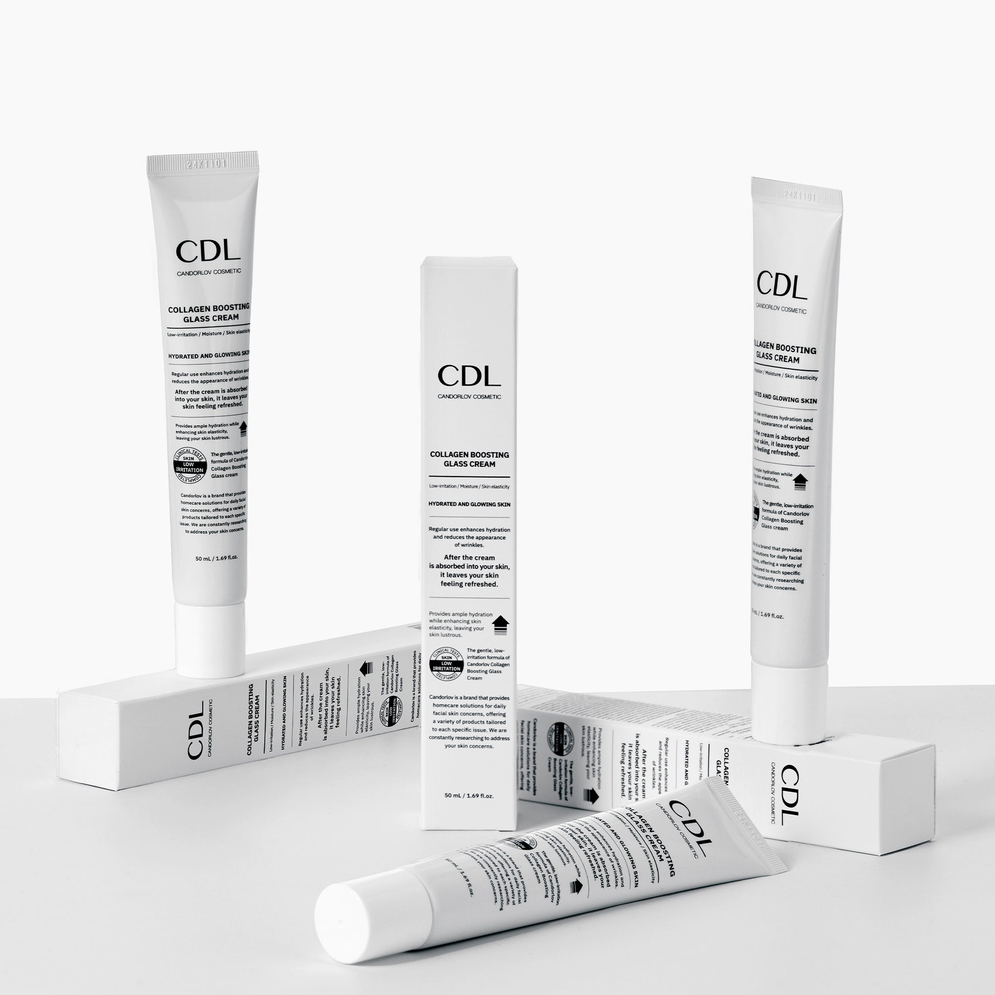 Collagen Boosting Glass Cream is a high-performance hydration formula powered by patented K-beauty technology. Infused with Oligo-HA, an ultra-low molecular hyaluronic acid that penetrates deep for intensive hydration, and PhytoPDRN™, a plant-derived regenerative complex that supports skin renewal and elasticity, the cream helps strengthen the skin barrier while restoring a smooth, plump, and naturally radiant complexion.